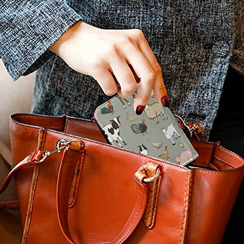 OTVEE Farm Animals Cow Pig RFID Credit Card Wallet, Microfiber Leather Zipper Card Case Holder for Women 6