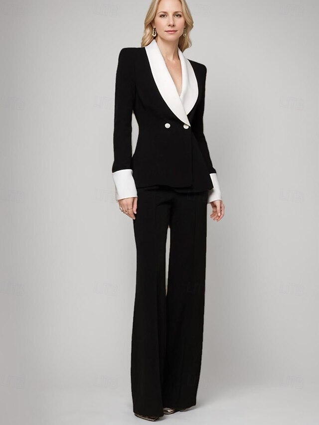 More information about Women's 2 Pieces Suits Formal Wedding Guest Stretch Crepe Elegant Minimalist Long Sleeve Floor Length Lapel Double Breasted