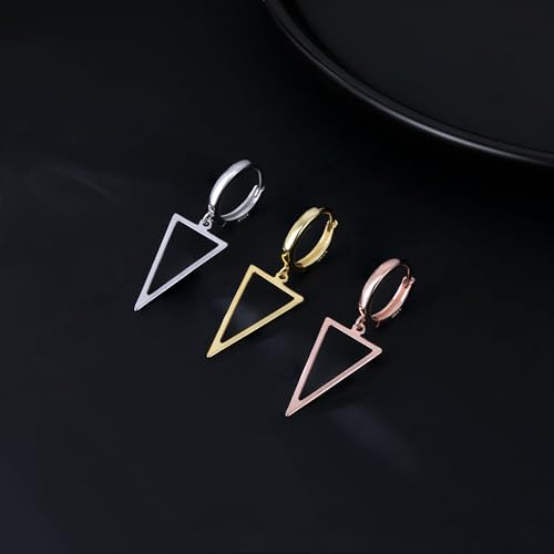HOT ! SLUYNZ 925 Sterling Silver Triangle Dangle Earrings for Women Teens Simple Geometric Dangle Earrings Minimalist Hoop Earrings Drop