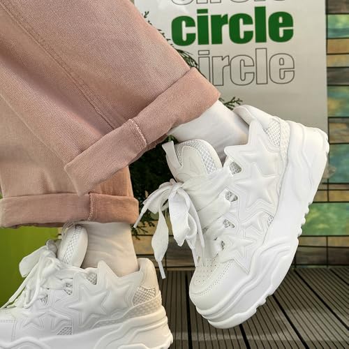 Cute Star Shoes for Women Chunky Platform Lace-up Comfortable Slip-Resistant Lightweight Soles Casual Sneakers Kawaii Y2K Retro Pretty Pastel Gifts for Girls 6