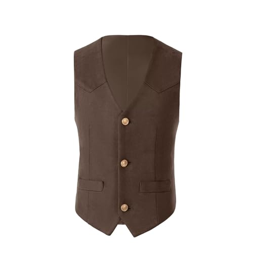 • Design: Boys casual western cowboy waistcoat slim fit suede Vest, classic western style, V-neck, single-breasted 3-button closure sleeveless jacket design, 2 real pockets.