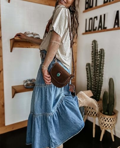 • Soft Material: Women's cute layered ruffle hem denim maxi skirt,are made of 65% cotton and 35% polyester; smooth, lightweight and skin-friendly fabric, soft, breathable and stretchy to keep you comfortable all day long.