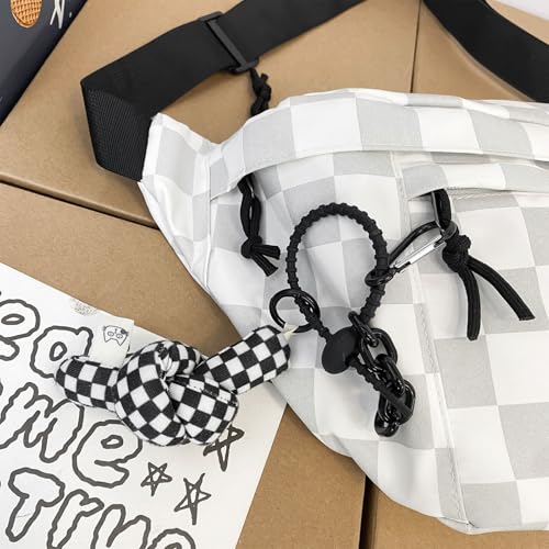 Checkered Crossbody Bag Knot Charms Large Canvas Checkered Bum Bag Spacious Bum Messenger Bags Alt Trendy Shoulder Bags 2025 7