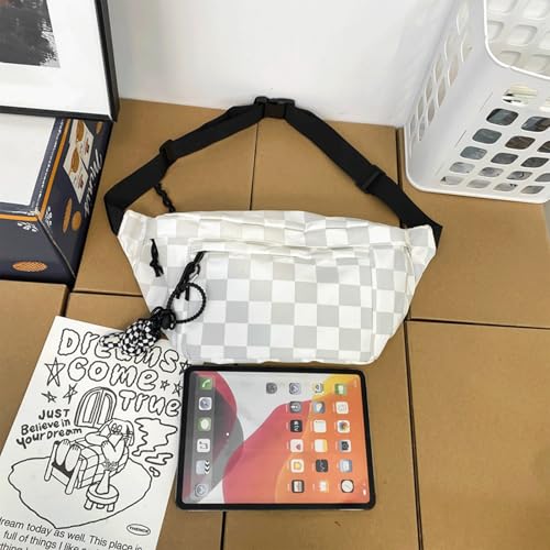HOT ! Checkered Crossbody Bag Knot Charms Large Canvas Checkered Bum Bag Spacious Bum Messenger Bags Alt Trendy Shoulder Bags 2025