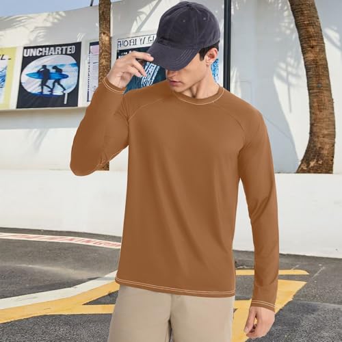 Brown Sun Protection SPF Rash Guard Shirt, Long Sleeve Sun Protections UPF 50+, Lightweight, expedient Drying, Round Neck, for Hiking, Running