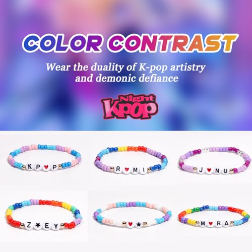 • Symbolic Letter Charms: Unleash your inner warrior with this vibrant Demon Hunter Kpop friendship bracelet, inspired by the iconic characters Rumi, Zoey, Jinu, and Mira! Designed for fans who crave bold style and symbolic meaning, this colorful charm bracelet blends anime artistry with Kpop-inspired flair.Each letter charm is designed to capture the essence of its namesake.