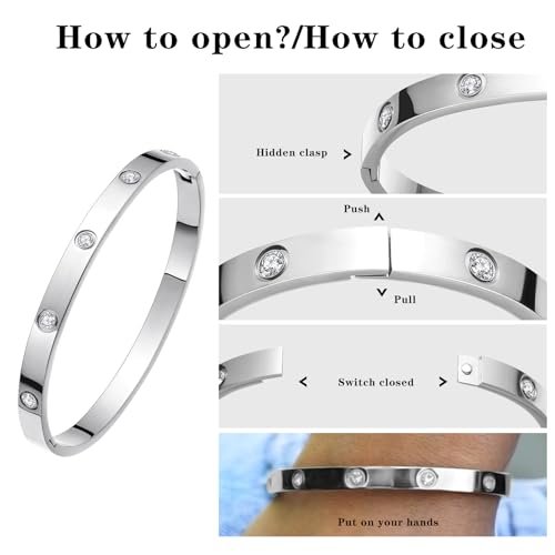 • EASY TO USE: Bangle with hidden clasp just need you apply slight force while moving upwards and downwards from the “lock” position, so it’s easy to put on/off.