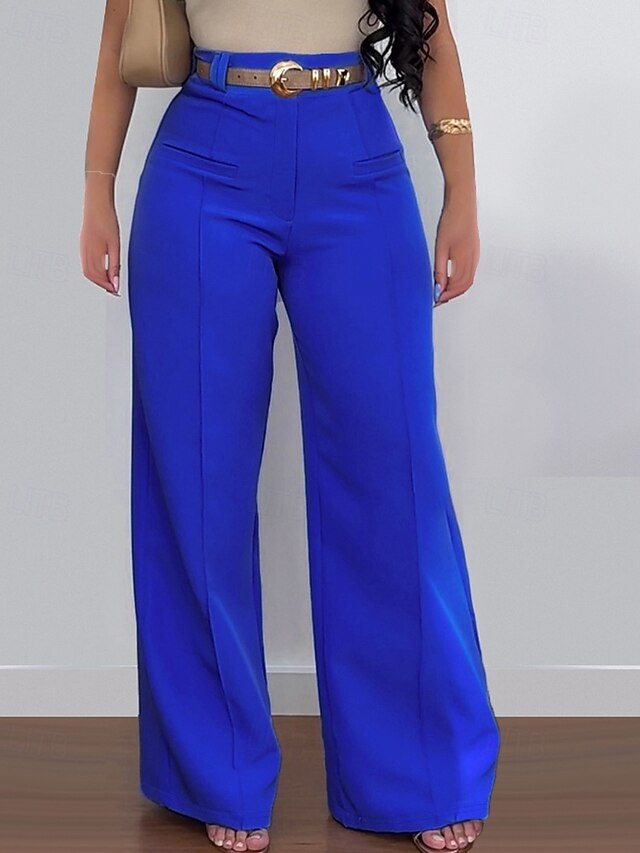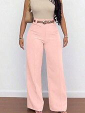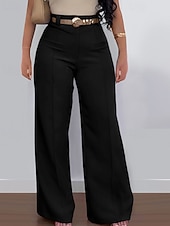 More information about Women's Wide Leg Slacks Streetwear Casual Full Length Natural Plain Elastic Waist Soft Street Holiday Weekend Black Pink Blue Coffee Fall Regular Fit