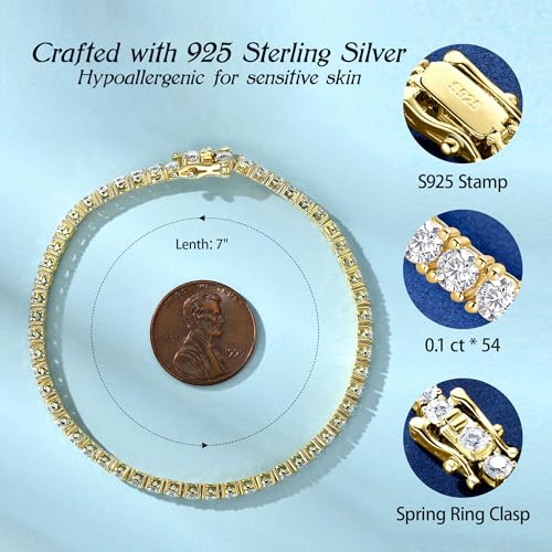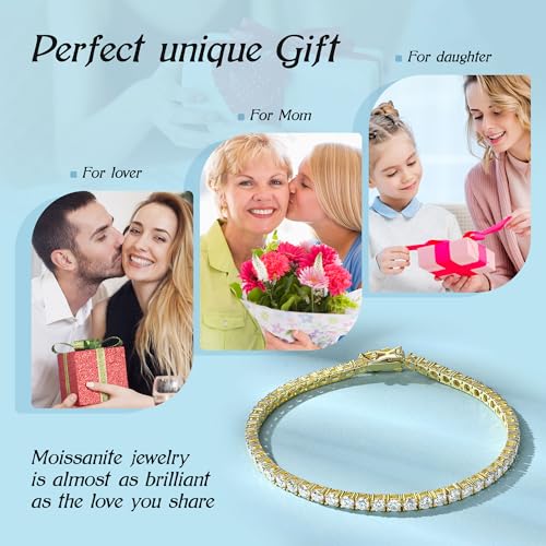 Item display length: 7 inchesMaterial: Sterling SilverMetal type: Sterling SilverClasp type: Double Locking Fold OverMetal weight: 5.92 ouncesGem type: MoissaniteD COLOR MOISSANITE SPARKLE - Adorned with 3mm x 56pc D color moissanite stones, this tennis bracelet shines with exceptional brilliance and clarity. Each moissanite is handpicked to ensure consistent fire and sparkle, creating a continuous line of radiance that catches light from every angle, making it a striking accessory.enduring TENNIS BRACELET DESIGN - The timeless tennis bracelet style features a continuous line of 3mm moissanite stones, blending elegance with versatility. It complements both casual and formal outfits, adding a touch of sophistication to any look, ideal for women who appreciate classic jewelry.925 STERLING SILVER - Crafted from high-quality 925 sterling silver, the tennis bracelet offers durability and a sleek, polished finish. The silver setting securely holds each moissanite, ensuring long-lasting wear and maintaining its luster with proper care, perfect for daily use or special occasions.VERSATILE FOR EVERY WOMAN - Whether for a wife, mom, or yourself, these 925 silver tennis bracelet are a versatile addition to any jewelry collection. They complement both casual and formal looks, making them a great choice for daily wear, parties, or as a thoughtful gift for loved ones.PERFECT 7 LENGTH - Designed with a 7 length, this moissanite tennis bracelet provides a comfortable fit for most wrists. The well-proportioned size ensures it sits securely without being too tight or loose, making it suitable for daily wear and easy to put on and take off. Perfect for everyday use. first-class materials and excellent craftsmanship ensure long-lasting durability.