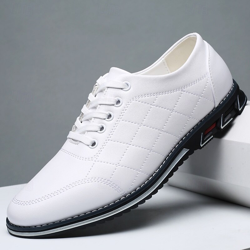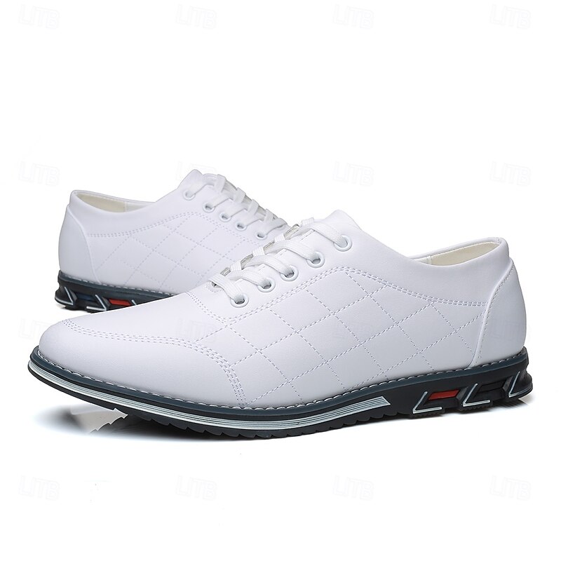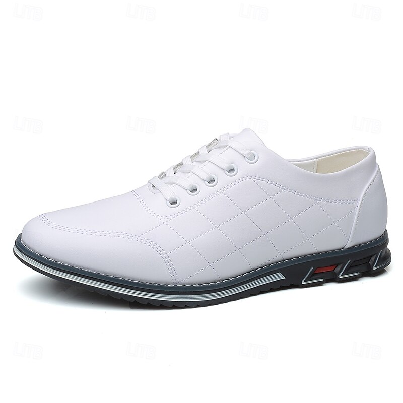 Highlights [Fabric] : Crafted from premium PU leather, these sneakers provide a polished and durable finish, offering both comfort and style. The leather is breathable, ensuring your feet remain cool and comfortable during extended wear. [Style] : Featuring a round toe design, these lace-up sneakers blend casual and sporty elements, making them perfect for various occasions. The quilted pattern on the sides adds texture and a modern touch. [Design Highlights] : Designed with a secure lace-up closure and reinforced metal eyelets, these sneakers ensure a strong and adjustable fit. The interior is lined with soft PU material for additional comfort, while the sleek silhouette complements a variety of outfits. [Occasions] : Ideal for daily wear and outdoor activities, these sneakers are versatile enough for both casual outings and sporty engagements. Whether you're attending a laid-back weekend gathering or embarking on an urban adventure, these shoes offer both functionality and style. [Size] : Available in a wide range of sizes from US7 to US12, these sneakers ensure a comfortable fit for a variety of foot sizes. Choose your perfect size for an optimal wearing experience.