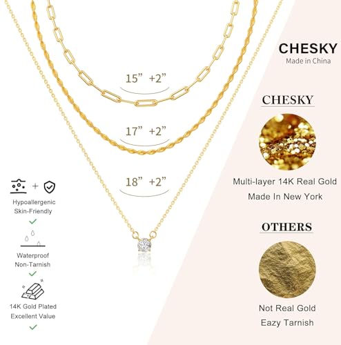 More information about CHESKY Layered Gold Necklaces for Women, Dainty 14K Real Gold/Silver Plated Chain Necklace Diamond CZ Pendant Necklace for Women Adjustable Layering Choker Necklace Gold jewelry for Women Gifts