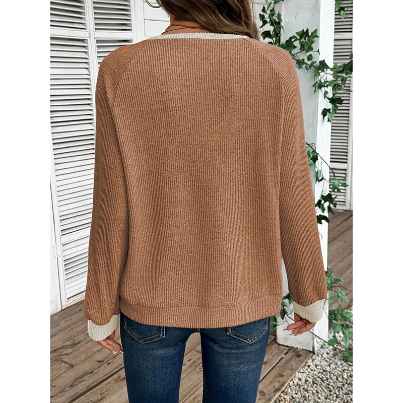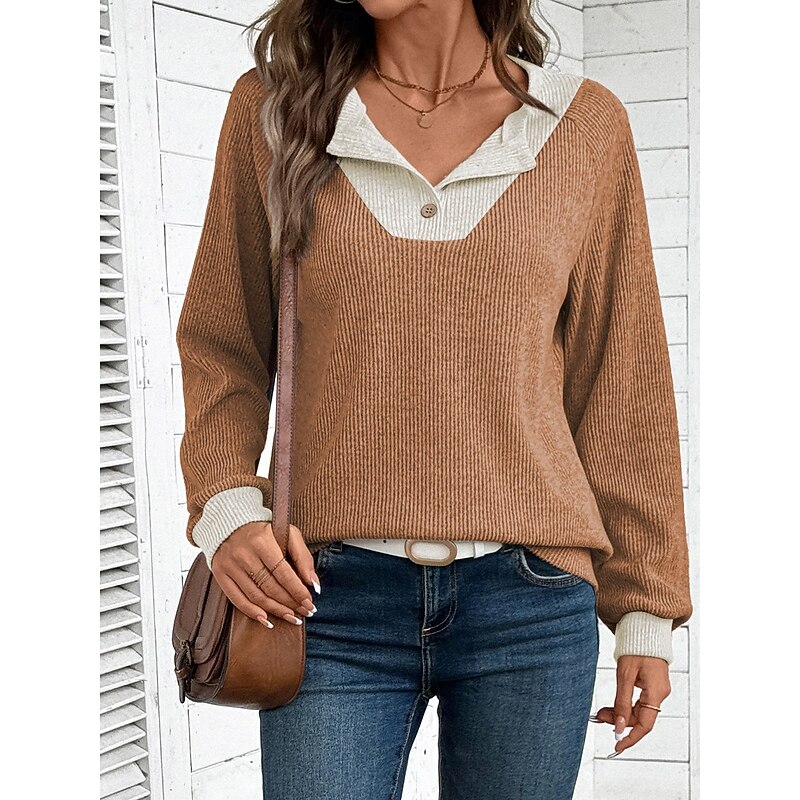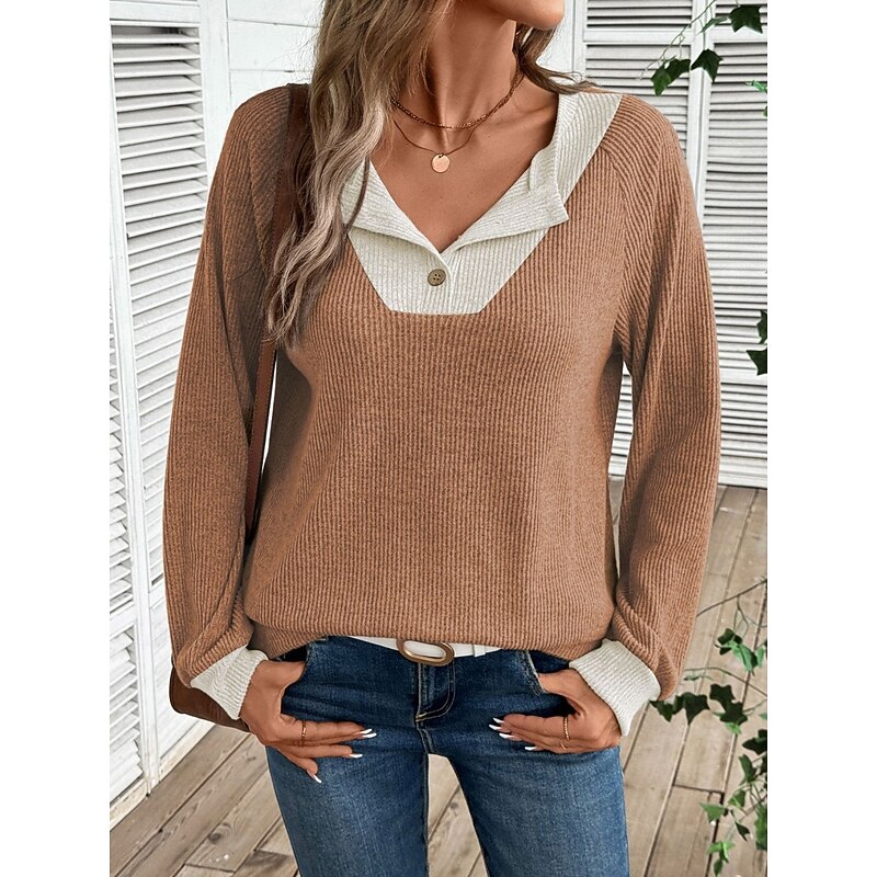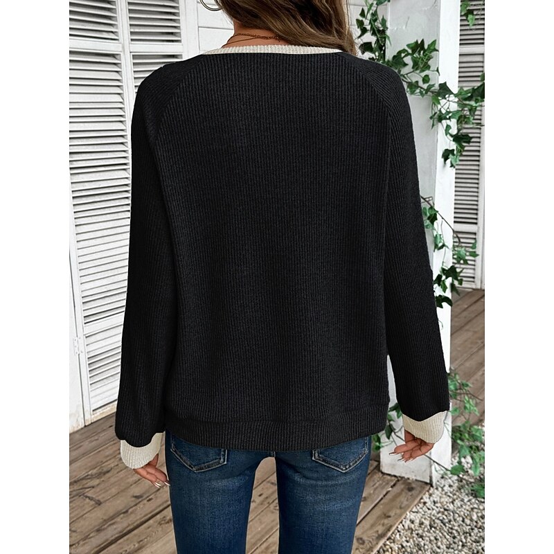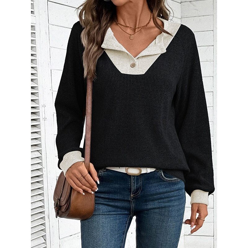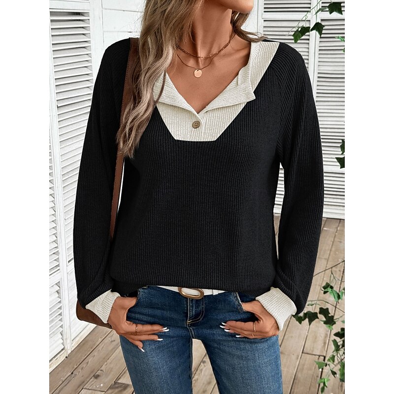 More information about Women's Sweater Casual Soft Pure Color Ribbed Shirt Collar Buttons Knitted Long Sleeve Regular Tops Knit Outdoor Daily Weekend Black Navy Blue Fall Winter