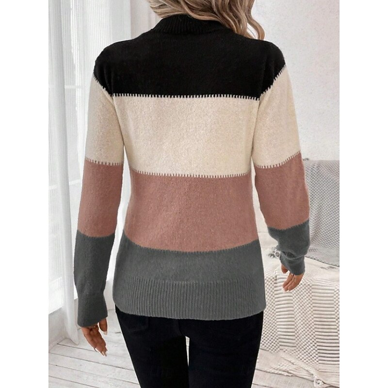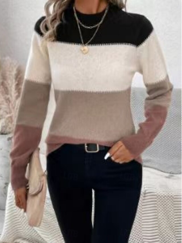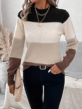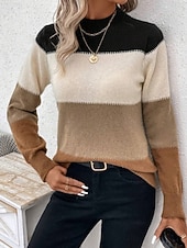 More information about Women's Sweater Casual Soft Striped Ribbed Crew Neck Patchwork Knitted Long Sleeve Regular Tops Knit Outdoor Daily Weekend Pink Camel Fall Winter
