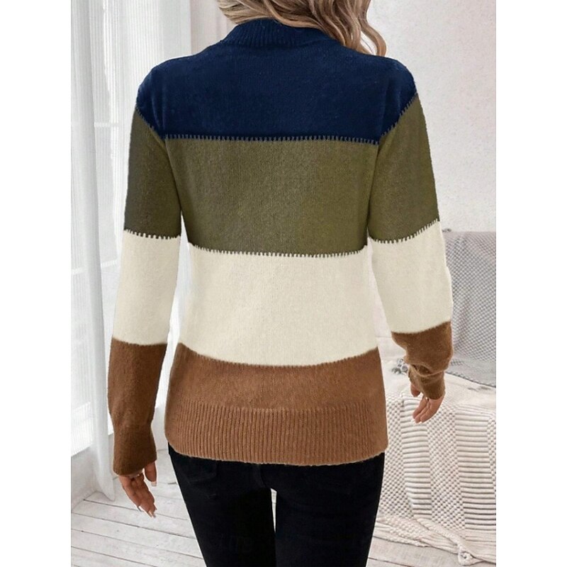 Women's Sweater Casual Soft Striped Ribbed Crew Neck Patchwork Knitted Long Sleeve Regular Tops Knit Outdoor Daily Weekend Pink Camel Fall Winter 18