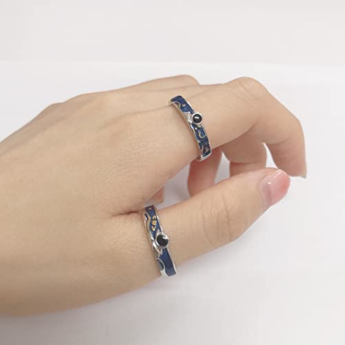 OIDIMS Cute Astronaut Couples Rings for Him and Her Matching Promise Engagement Wedding Blue Statement Open Band Sets Planet Star Moom Jewelry Gift for Valentine's Day Anniversary 4