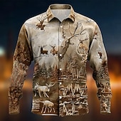 HOT ! Men's Reindeer Plants Forest Shirt Button Up Shirt Long Sleeve Vintage Retro Outdoor Camping & Hiking Hunting Spring Fall Turndown 3D Print Collared Shirts Brown