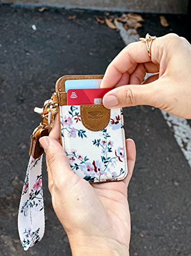 POCKT Slim Card Holder Wallet + Wrist Lanyard for Keys Bundle for Women | Bloom 6