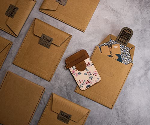• WALLET DETAILS: We designed our cardholder based on 4 total pockets. It allows you to add 5-8 cards and folded bills. If you would like to add more than 8 cards, your wallet might be tighter than it should be. Please use it for 5-7 days and let the genuine leather get loose with the shape of your cards. DIMENSIONS (INCH): Elastic Card Holder: 4.25" Length x 2.75" Width x 0,15" Height | Gift Envelope: 6" Length x 4.8" Width x 0.3" Height