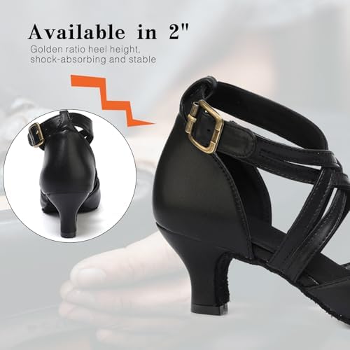 • 2 inch heels for women:solid chunky heel provides better balance and stability for a variety of dance moves, allowing your feet to bend and stretch freely, feel the floor and realize unrestrained dance steps.