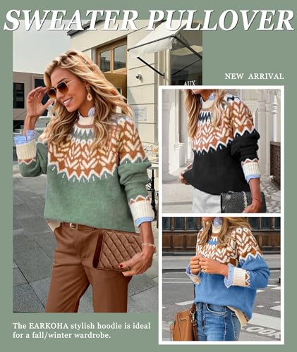 EARKOHA Women's Casual Mock Neck Ribbed Sweater Pullover 2025 Fall Long Sleeve Print Fair Isle Sweater Top