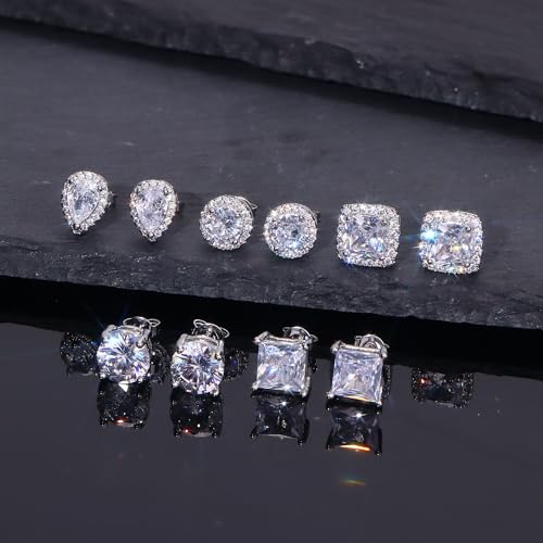 • AFFORDABLE STUDS: One order includes 5 pairs sterling silver studs: round cz studs; square cz studs; round halo earrings, square halo earrings and teardrop halo earrings. shiny big faux diamond earrings to make your more charming and get tons of compliments.