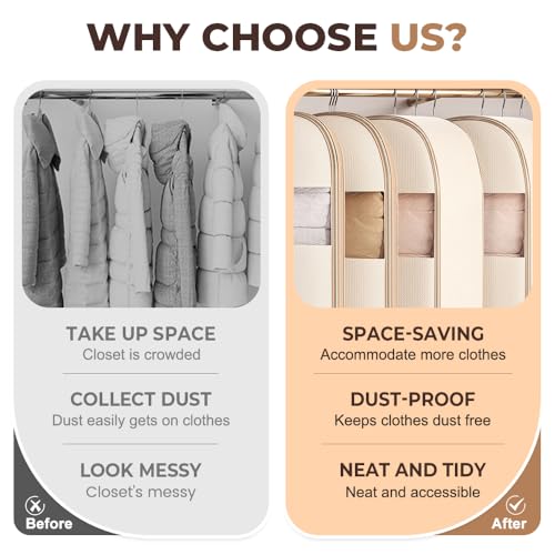 Space Saving Hanging Garment Bag with Self Compression Zipper, 2025 Space-Saving Dust-Proof Down Jacket Compression Storage Bag for Coats Blankets (Transparent, L-110 * 58 * 15cm) 5