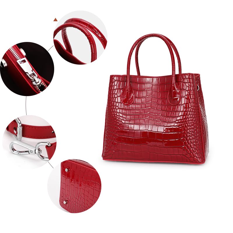 • 1. Premium Cowhide & Crocodile - Embossed Elegance This handbag is made from high - quality cowhide, ensuring durability and a luxurious feel. The crocodile - embossed pattern adds a bold, refined touch, making it a standout accessory. The cowhide’s natural texture ages beautifully, developing a unique patina over time, so your bag remains stylish and distinctive for years.