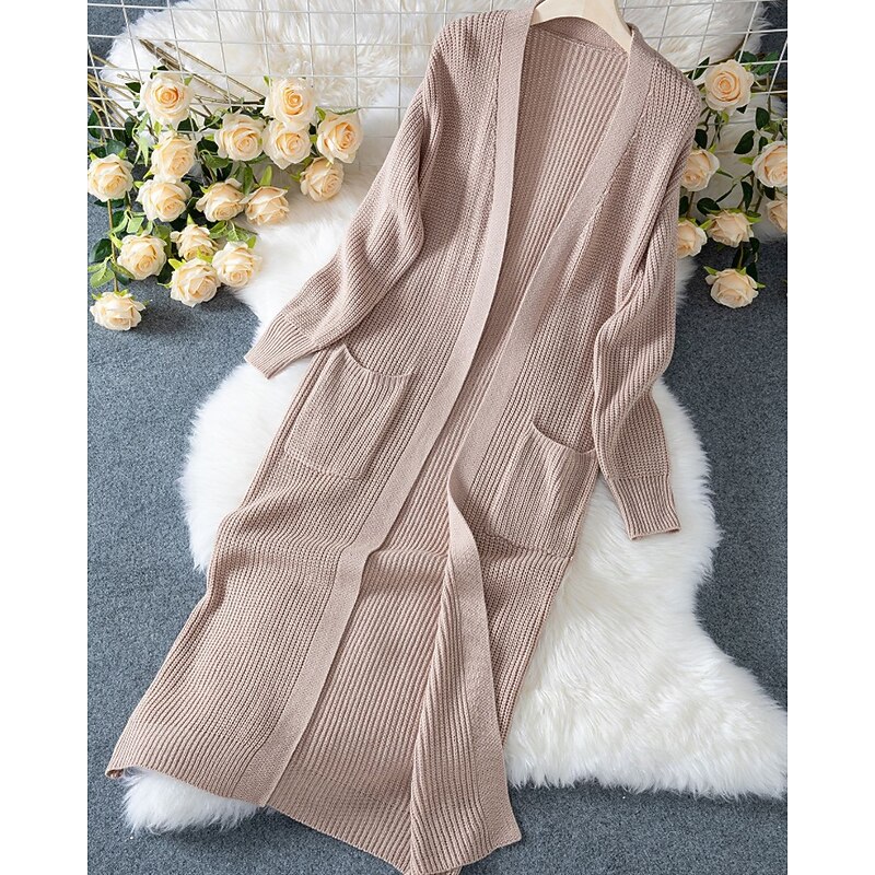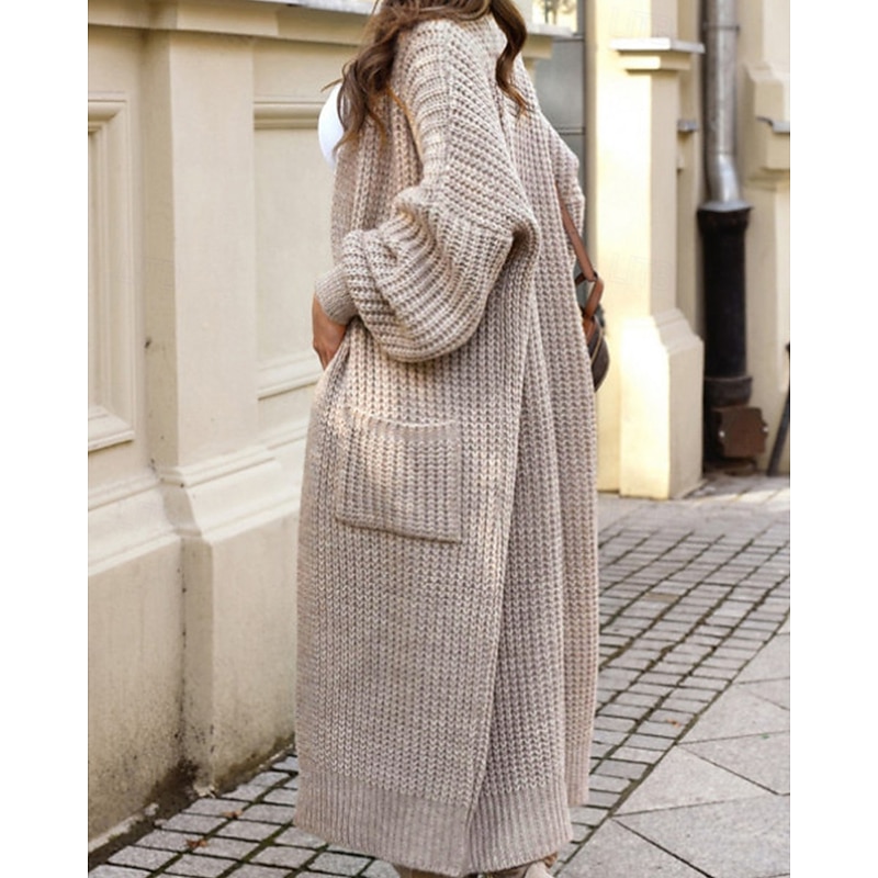 More information about Women's Sweater Cardigan Streetwear Casual Solid Color Cable V Neck Pocket Knitted Long Sleeve Long Tops Knit Daily Holiday Weekend Khaki Fall Winter