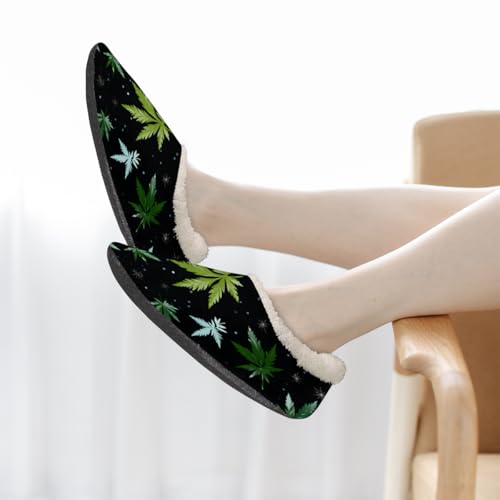 HOT ! Marijuana Leaves Pattern Slippers for Women Men Cozy Non-slip House Shoes Winter Warm Indoor Slipper