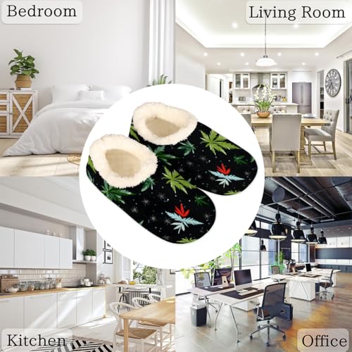 Marijuana Leaves Pattern Slippers for Women Men Cozy Non-slip House Shoes Winter Warm Indoor Slipper 4