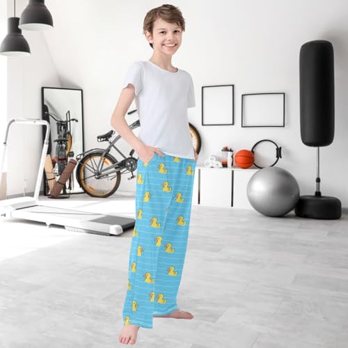 Boy's Pj Pants Yellow Duck Blue Swimming Pool Lounge Bottoms Elastic Kids Joggers with Pockets Size 6-14 7