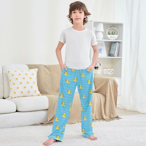 Boy's Pj Pants Yellow Duck Blue Swimming Pool Lounge Bottoms Elastic Kids Joggers with Pockets Size 6-14 2