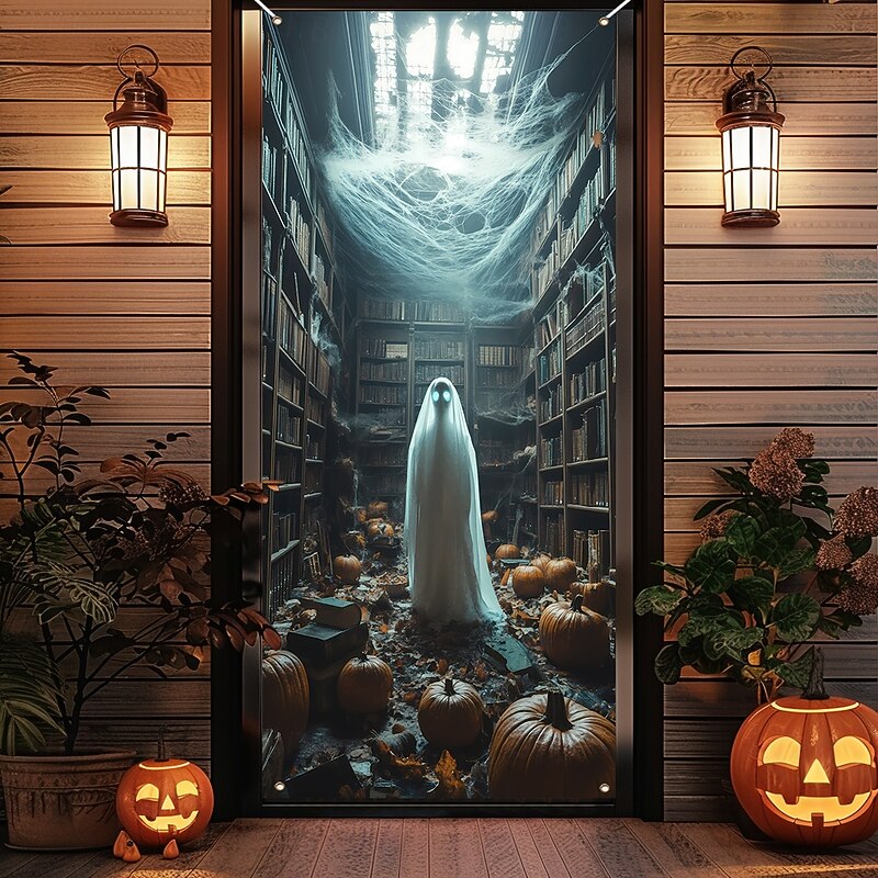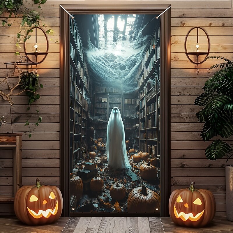 sought-after ! Halloween Door Cover Outdoor Banners Witch Banshee Psychedelic Dark Punk Gothic Style Party Outdoor Shooting Backgrounds Front Door Wall Porch Home Decor