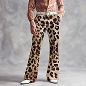 Men's Leopard Print Disco Pants 60s 70s Bell Bottoms Mid Waist Vintage Retro Outdoor Vacation Party Side Pockets Flared Leg Pants Trousers Spring Fall 3D Print Dark Khaki Light Khaki khaki 3