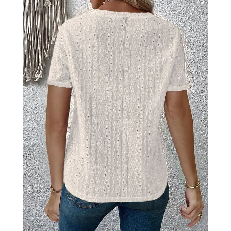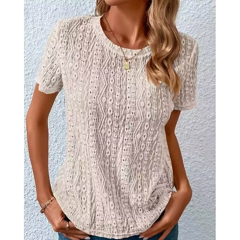 HOT ! Women's Blouse Lace Tops Plain Daily Stylish Basic Short Sleeve Crew Neck Regular Tops Work Daily Holiday Hollow Out White Beige Summer Spring