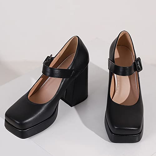 Women's Block Heel Square Toe Pumps Buckle Platform Heels Pumps 6