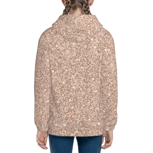 Beige Sparkling Glitter Kids Pullover Hoodies Boys Zip Up Sweatshirts Girls Athletic Clothes with Pocket 5