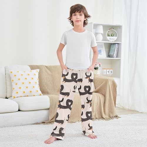 HOT ! Boys' Pants Dachshund Dogs Valentines Long Bottoms Jogger Pants Elastic Waist Trousers with Pockets S-XL