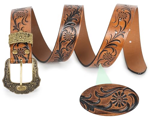 sought-after ! Vintage Western Belts for Women Cowgirls Belt with Floral Carved for Jeans Pants Dresses