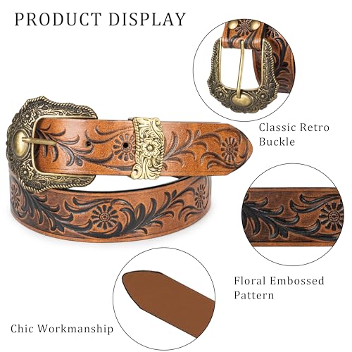 More information about Vintage Western Belts for Women Cowgirls Belt with Floral Carved for Jeans Pants Dresses