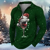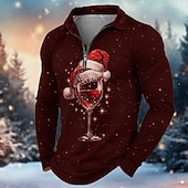 More information about Christmas Men's Christmas Pattern Polo Long Sleeve Turndown Modern Leisure Holiday Casual Daily Zipper 3D Print Spring Fall Winter Black Green Wine