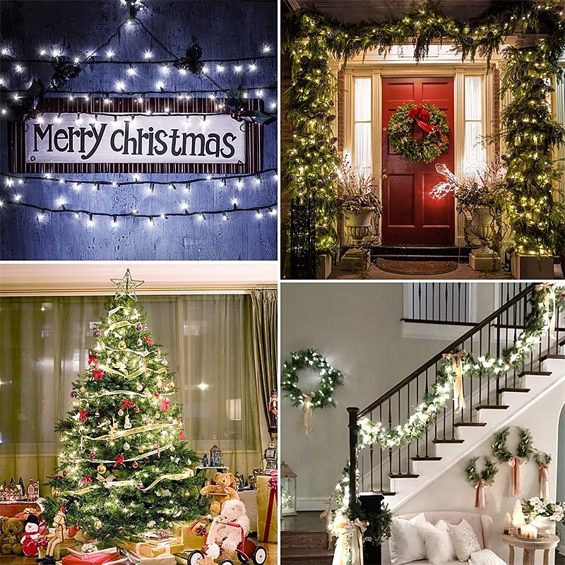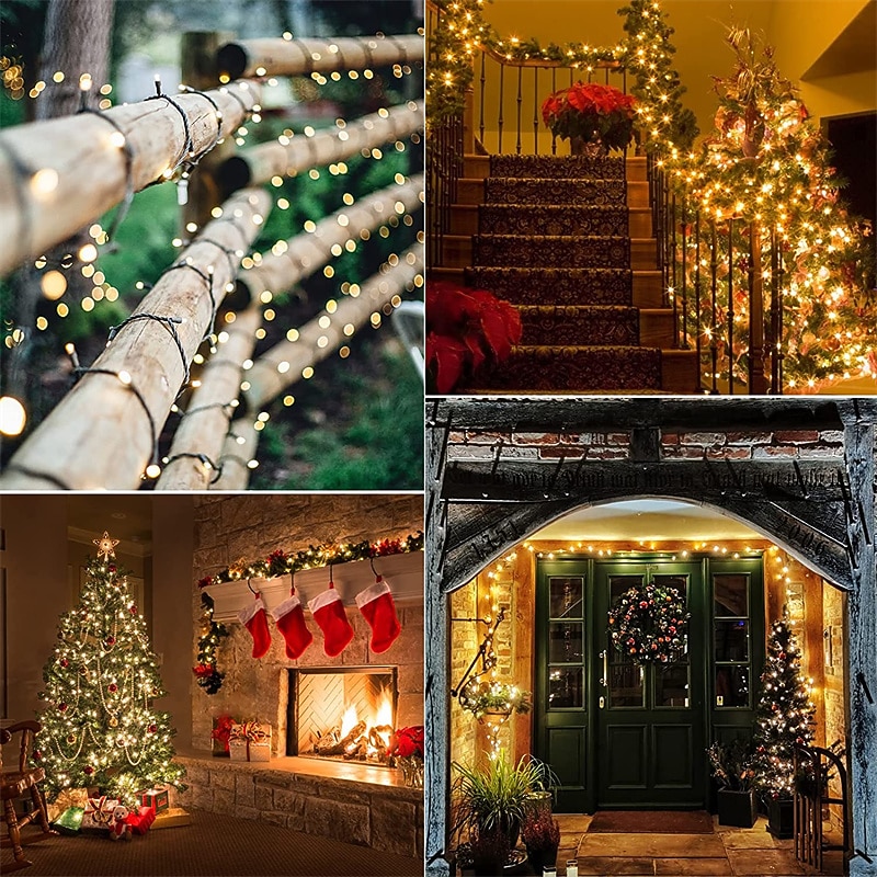 Outdoor Christmas Tree Lights, Waterproof 10-100M LED Twinkle String Light with 8 Modes, Plug-in Xmas Fairy Lights, Christmas Window Green Wire Holiday Decoration 11