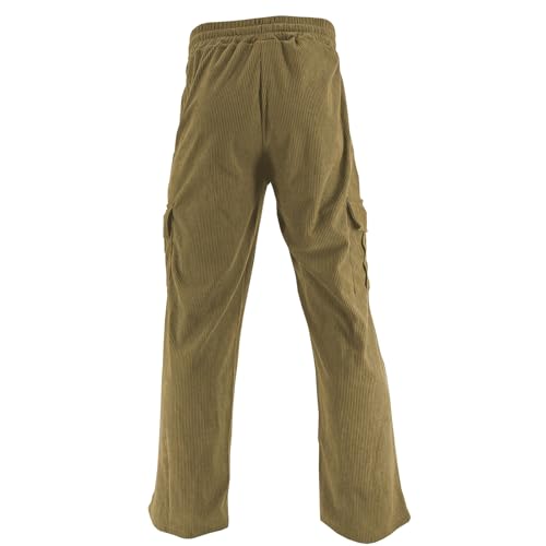 More information about Corduroy Cargo Pants Men Casual Comfy High Elastic Cargo Sweatpants for Men Wide Leg with Pockets Drawstring Heavyweight Sport Hiking Stretch Loose Fit Trouser Light Brown L