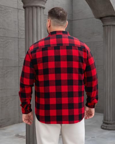 PINKMARCO Men’s Big & Tall Flannel Shirt: Button Down Plaid Shirt for Men, Long Sleeve Casual Shirt for Office Vacation 6