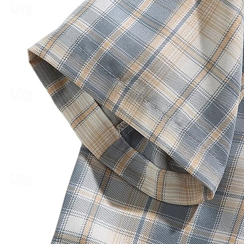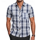 Highlights Stay sleek and comfortable this summer with our Men's Short Sleeve Plaid Shirt. Perfect for a casual vacation look, this shirt features a enduring lapel neckline and a trendy pocket design. Elevate your summer wardrobe with this versatile piece.