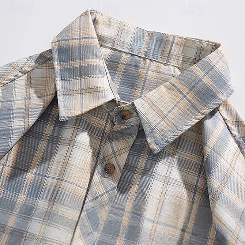 sought-after ! Men's Shirt Summer Shirt Casual Shirt Beach Shirt Button Up Shirt Navy Blue Apricot Short Sleeve Plaid Lapel Vacation Hawaiian Pocket Clothing Apparel Fashion Casual cushy