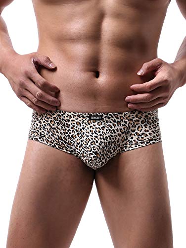 HOT ! iKingsky Men's Leopard Cheeky Boxer Briefs Sexy Mini Cheek Thong Underwear Low Rise Brazilian Back Mens under Panties