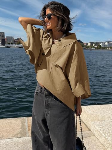 Cicy Bell Womens Oversized Cropped Trench Coats Single Breasted 3/4 Cape Sleeve Trendy Casual Jackets Button up Outerwear 5