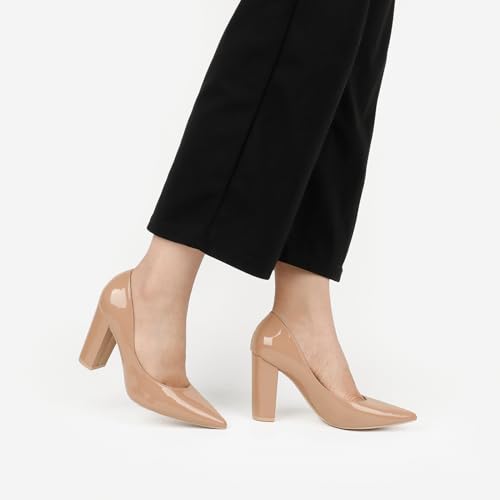 JOY IN LOVE Chunky Heels for Women High Block Heel Pointy Toe Dress Work Pumps 4