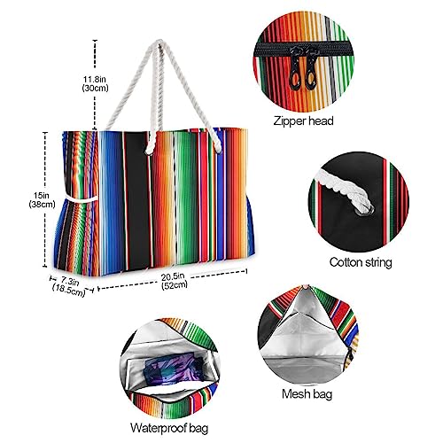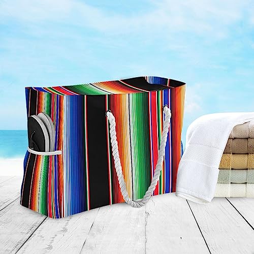 YETTASBIN Mexican Serape Blanket Stripe Large Beach Tote Bag, Lightweight Waterproof Sandproof Swim Pool Bag with Rope Handles & Zipper for Beach Travel Outdoor 5
